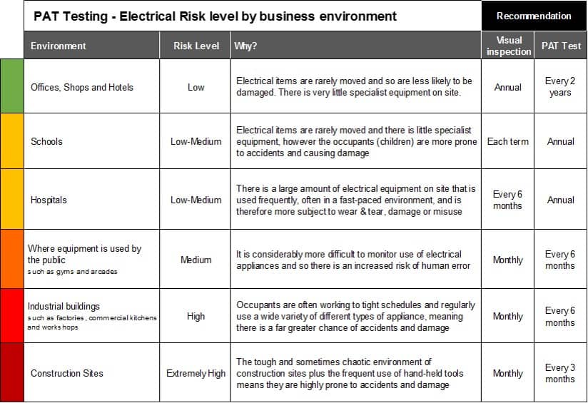pat testing - electrical risk by business environment - Surr…